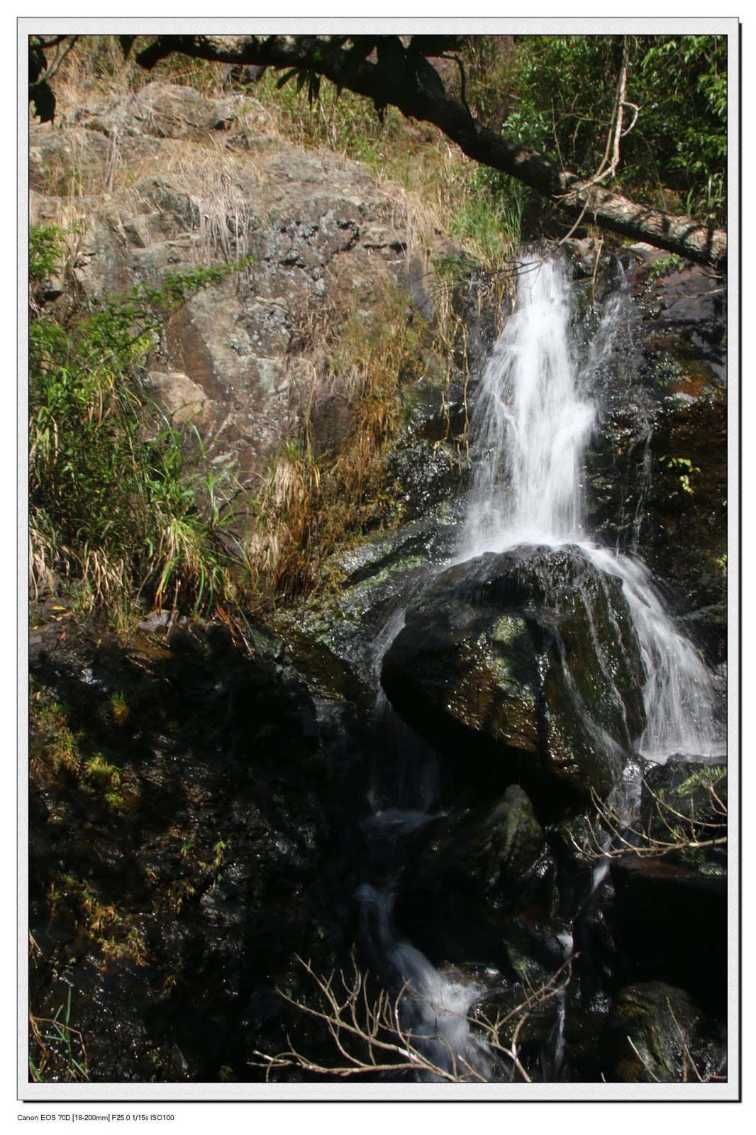 早上大埔下著細雨,幸好到達荃灣天色放晴,與友人在港鐵站b出口集合,齊人便往搭小巴到青龍頭,時甘生及elsa已在等候,未幾偉哥伉儷亦到達,一行八人沿龍如路上,十多分鐘便到大欖郊野公園入口,轉走左方往深井聚水塘,過了橋再行一小段到達一鐵橋,鐵橋右方右進入鬼怒坑下源。澗道初段較為平凡,兩旁有樹蔭及不少垃圾,不知從何流入,較為陰森,前行少許便見引水道口,沿左方上溯。此澗道不長,此只得一、兩個小潭瀑,稍為沉悶,最精采要數末段的鬼怒壁,壁旁有三道連環飛瀑,今日水勢不大算大,飛爆不太壯觀。拍過照沿直壁上爬,爬在乾壁上亦未算太險,上但也頗費氣力。壁旁有前人放下的繩索可幫一把,不一會便上達瀑頂,隊友在頂休息片刻,頂部右邊就是出山口,前行少許接回郊遊徑,可選往清快塘或深井,往深井方向下山,兩時多下達深井享用下午茶。