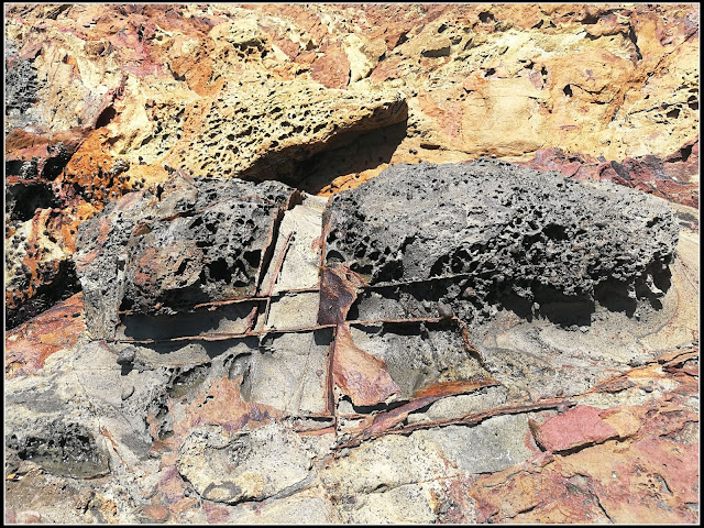 今早天氣炎熱,在東薈城B出口集合24 人出席,何老師是今日領隊,帶領大家去玩。9.30準時起步往巴士站搭11A特別班次到石壁水塘霸前下車,在水塘拍過大合照,沿草坡下行先看看位於水塘提霸東端下方的方石刻。看過石刻,沿石壁監獄旁小路步至海灘開始綑岸,期間要上山避開斷位,觀賞沿岸沉積岩彩石,有點像位於南澳大辣甲的彩畫及有著焦炭般的岩石風貎,其間還會看到獅子鬥麒麟,幽靈石、通天洞、神蛙出海、象鼻岩等奇岩異景。綑邊至巨熊山咀,會看到一頭企鵝及大啤啤熊屹立在岸邊,繼續上攀便是巨熊山咀,老師及隊友們爬上巨熊頭上拍照,看見也覺驚險萬分。看過景所有景點後入林覓路接回鳯凰徑經籮箕灣出水口搭車回東涌轉車,今日路線不長,但因天氣炎熱及綑邊關係,也走了7個多小時,部份隊友還要趕去參加社長的新書發佈,非常趕忙。