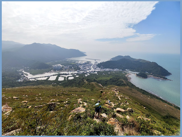 早上天氣有點寒,到東涌香港地早餐,餐後搭9.05班車到靈隱寺站下車,車尾方向行少許,過對面涼亭,涼亭旁維修梯上行,盡頭轉入山徑,沿山徑上獅山,沿途風景優美,可俯瞰大澳水鄉及港珠澳橋人工島。上獅山的路碎石較多,但不難走,小心上行就可以。上獅山頂前會見一堆石景,上山時看似狗仔,上至山腰回看又似雞,行山友稱雞狗石,在山腰遠眺見一僧人石在半山,拍照後沿山脊上322米高獅山頂,往右方上望似有一標柱在頂,沿山徑上行,一會就到達象山頂,象山海拔449米,時候不早,就在象山頂大休。休後沿山脊下山,山頂有多條路,看看地圖下大澳方向稍為左走,沿山徑左下好快見一座小山,不用上頂左邊有路,沿徑下行開始見石景及碎石坡,小心下行近山腰有一海豹石,拍照後繼續下一段便見嶼北界碑,界碑於1902年豎立,看過界碑沿石級下行接東澳古道,時間尚早可以加遊虎山。續往大澳方向走,過新基橋至岔口走右方小徑,穿過棚屋至楊候古廟,古廟建於康熙年間。探過古廟,廟旁左方小徑前行,有新建木梯上虎山, 虎山只有海拔75米高,山徑建有山梯及觀景亭,景觀開揚。沿山徑前行,前方有標炷及海豚像供遊人拍照,照後沿石級下行,走右邊出少林武術中心,再沿路經街市過大橋出巴士站搭巴士回東涌轉車,今日走了7公里多,5 個多小時走完。