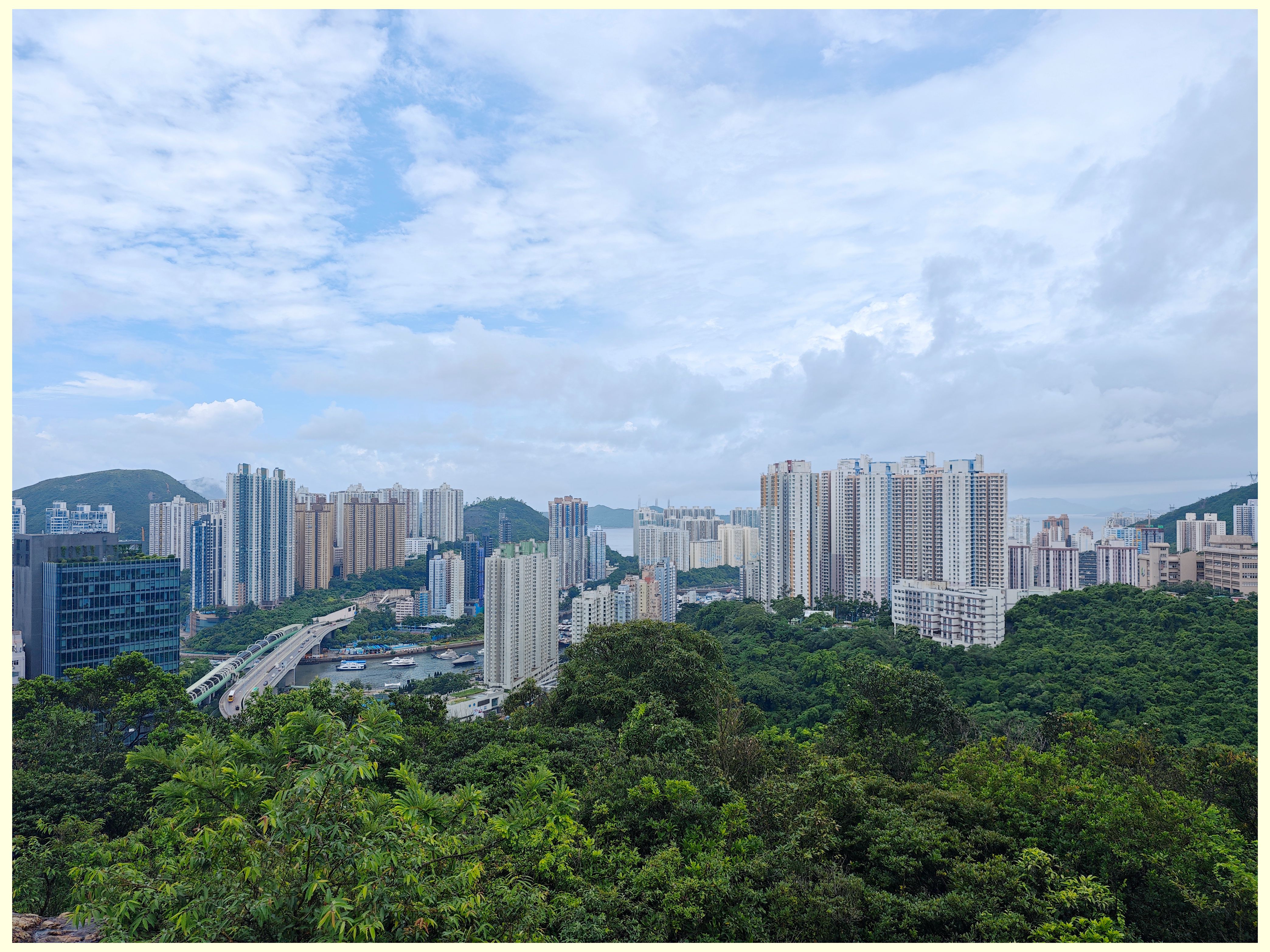 早上天陰陰,搭車到灣仔時大雨殺到,天文台發出了黃雨警告,反正已出門,到灣仔吃完早餐再算。吃過早餐到港鐵站,雨細了點,4 人行程繼續,到合和中心搭電梯到堅尼地道步上灣仔峽,橫過寶雲道,斜路上灣仔峽道,到達灣仔峽公園時雨勢頗大,避避雨待雨細點再起步,入金夫人徑經兩條古石橋到觀景台涼亭大休。休後繞行斑納山山腰路到香港仔上水塘,大雨後看到上水塘水滿排水好美,拍照後經引水道、水塘道、漁光邨下香港仔市中心午膳,今日輕鬆走10公里,不用4 小時完成。